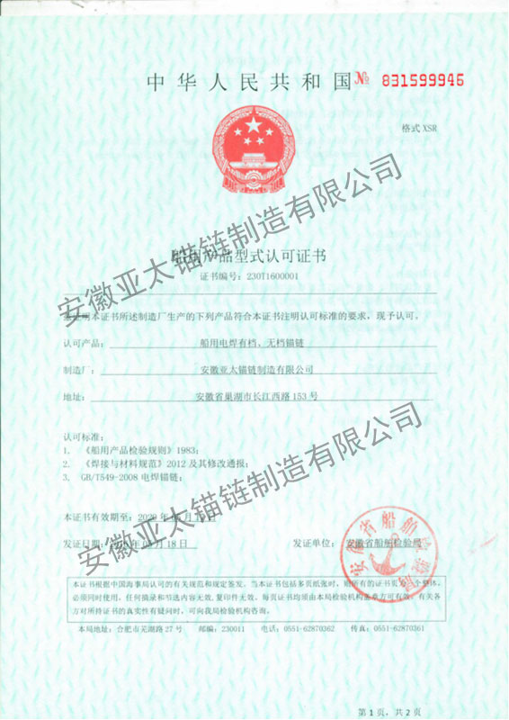 安徽亞太錨鏈制造有限公司
