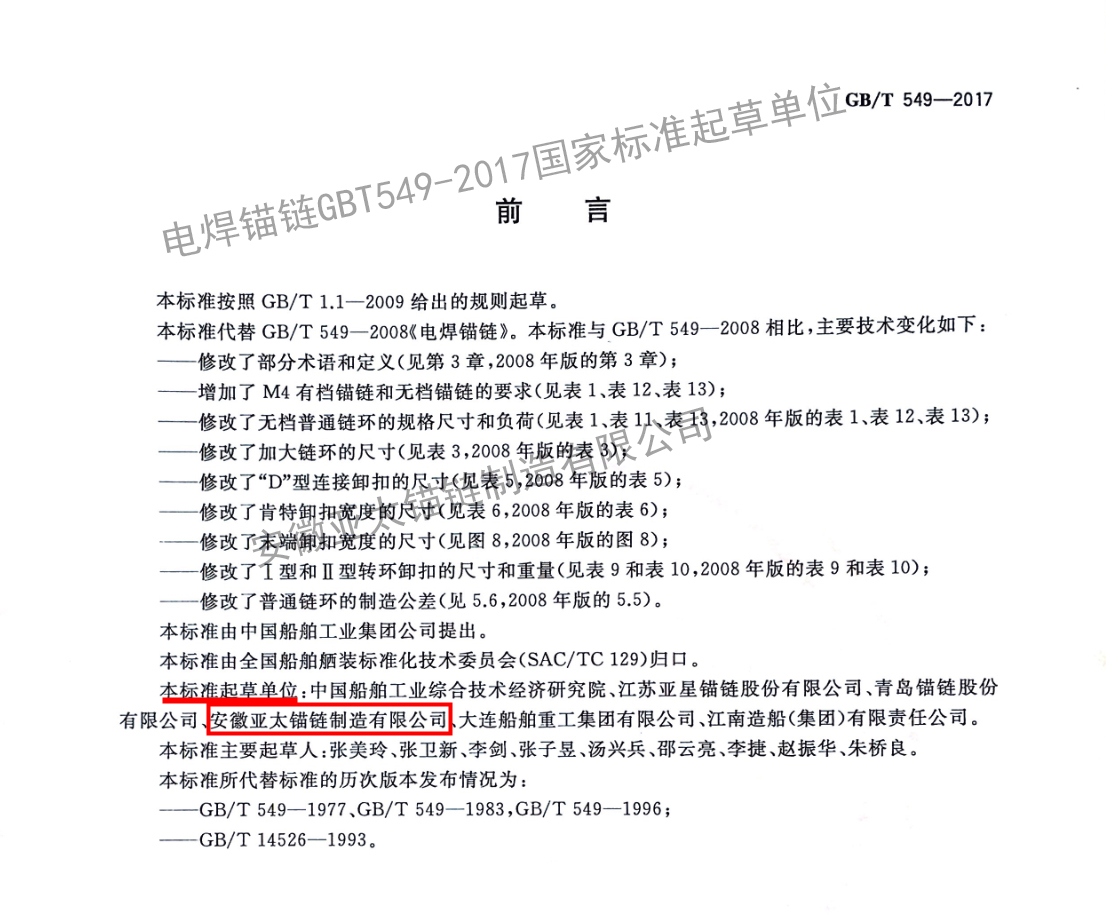 • 電焊錨鏈GBT549-2017國家標(biāo)準(zhǔn)起草單位